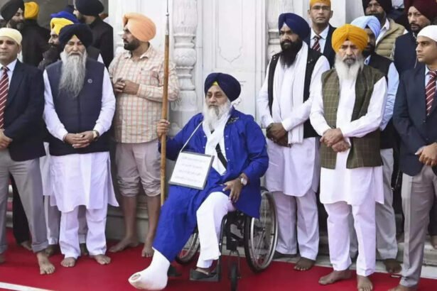 Shiromani Akali Dal leader Sukhbir Singh Badal at the Golden Temple to serve the 'tankhah' given to him by the Akal Takht, in Amritsar. (PTI Photo) CHANDIGARH: Five Sikh high…