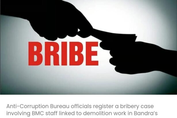 एसीबी ने बांद्रा में तोड़फोड़ की कार्रवाई के लिए कथित तौर पर 2 लाख रुपये की रिश्वत मांगने के आरोप में बीएमसी के जूनियर इंजीनियर मुकदम के खिलाफ मामला दर्ज…