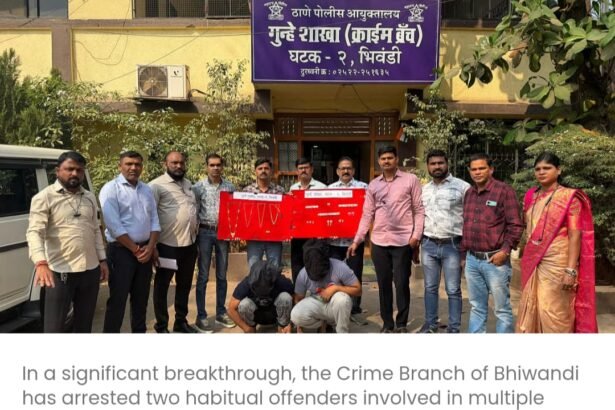 भिवंडी: भिवंडी क्राइम ब्रांच ने एक महत्वपूर्ण सफलता हासिल करते हुए कई घरों में सेंधमारी और वाहन चोरी के मामलों में शामिल दो आदतन अपराधियों को गिरफ्तार किया है और…