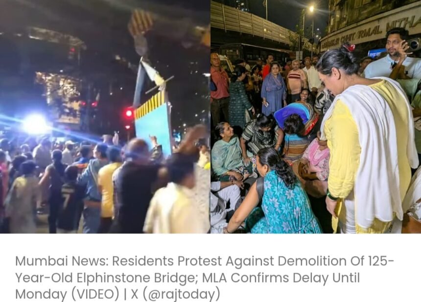 125 साल पुराने एलफिंस्टन ब्रिज को गिराए जाने के खिलाफ निवासियों का विरोध प्रदर्शन; विधायक ने सोमवार तक स्थगन की पुष्टि की………….