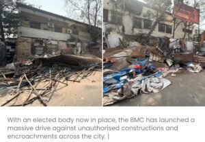 बीएमसी का अतिक्रमण विरोधी अभियान: मुलुंड में 61 ढाँचे ध्वस्त, डोंगरी में ज़कारिया रोड पर अतिक्रमण हटाने का काम जारी………