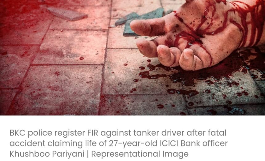 बीकेसी में तेज रफ्तार टैंकर की चपेट में आने से 27 वर्षीय बैंककर्मी की मौत; ड्राइवर पर मामला दर्ज……….