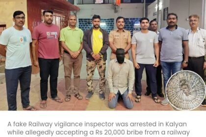 कल्याण में फर्जी रेलवे सतर्कता निरीक्षक को 20,000 रुपये की रिश्वत लेते हुए गिरफ्तार किया गया......... कल्याण: केंद्रीय रेलवे के…