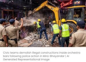 एमबीवीवी पुलिस ने अवैध ऑर्केस्ट्रा बारों पर कार्रवाई की, अनाधिकृत ढांचों के खिलाफ विध्वंस अभियान शुरू किया गया……….