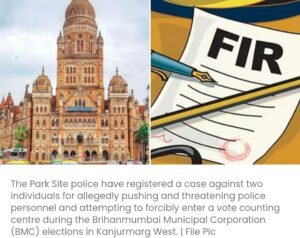 मुंबई: पार्क साइट पुलिस ने कंजरमार्ग पश्चिम में बृहन्मुंबई नगर निगम (बीएमसी) चुनाव के दौरान मतगणना केंद्र में जबरन घुसने की कोशिश करने और पुलिसकर्मियों को धक्का देने और धमकाने के आरोप में दो व्यक्तियों के खिलाफ मामला दर्ज किया है।