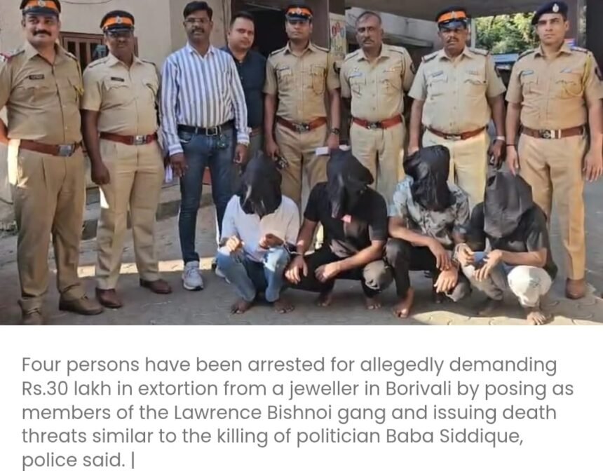 लॉरेंस बिश्नोई गिरोह का रूप धारण करने वाले चार लोग बोरीवली के जौहरी से 30 लाख रुपये की उगाही करने के आरोप में गिरफ्तार………..