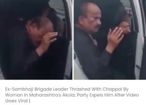 महाराष्ट्र के अकोला में महिला ने पूर्व संभाजी ब्रिगेड नेता की चप्पल से पिटाई की; वीडियो वायरल होने के बाद पार्टी ने उन्हें पार्टी से निकाला…………..