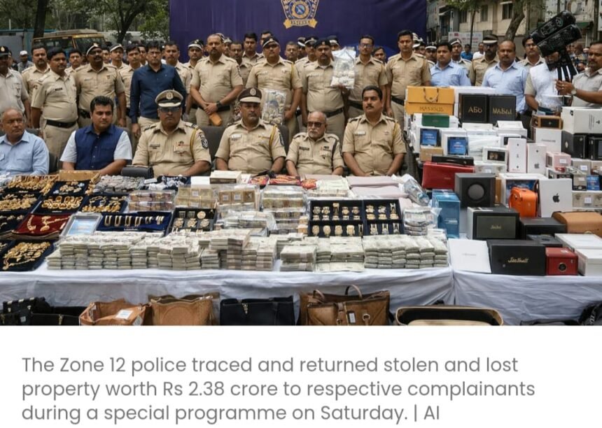 मुंबई: जोन 12 पुलिस ने शनिवार को एक विशेष कार्यक्रम के दौरान 23 लाख रुपये की चोरी और गुमशुदा संपत्ति का पता लगाकर संबंधित शिकायतकर्ताओं को लौटा दिया। बरामद की गई वस्तुओं में 58 तोला सोने के आभूषण, 485 ग्राम चांदी के आभूषण, छह ऑटो रिक्शा, पांच मोटरसाइकिल, 1475 मोबाइल फोन और साइबर अपराध मामलों में गुम हुई धनराशि शामिल थी।