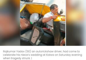 मुंबई: ऑटो रिक्शा चालक राजकुमार यादव (50) शनिवार शाम को कालवा में अपनी भतीजी की शादी में शामिल होने आए थे, तभी यह दुखद घटना घटी। मुलुंड के एलबीएस मार्ग पर एलिवेटेड मेट्रो रेल की पैरापेट दीवार का एक हिस्सा गिर गया, जिससे उनके एक रिश्तेदार की मौत हो गई और यादव तथा परिवार का एक अन्य सदस्य गंभीर रूप से घायल हो गए। शादी की तैयारियों में डूबा घर अचानक मातम में डूब गया, खुशी का माहौल मातम में बदल गया।