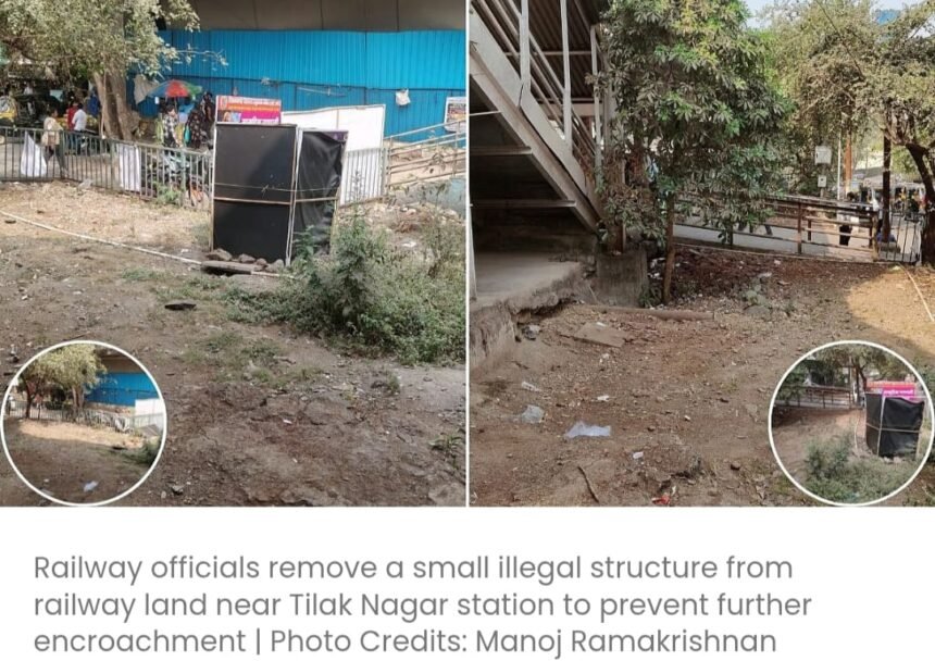 मुंबई: मुंबई उपनगरीय रेलवे की हार्बर लाइन पर तिलक नगर स्टेशन के बाहर रेलवे की ज़मीन पर बने अतिक्रमण को मुंबई रेलवे सुरक्षा बल (आरपीएफ) के मुंबई डिवीजन ने ध्वस्त कर दिया है। यह कार्रवाई माइक्रो-ब्लॉगिंग साइट X पर एक यात्री द्वारा भेजे गए संदेश के बाद की गई।